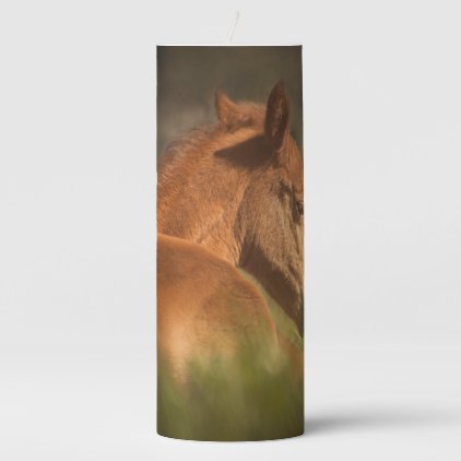 Foal sitting down pillar candle